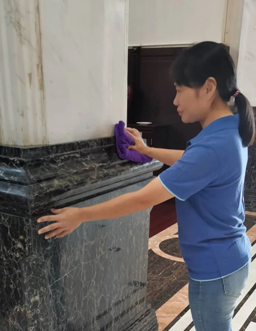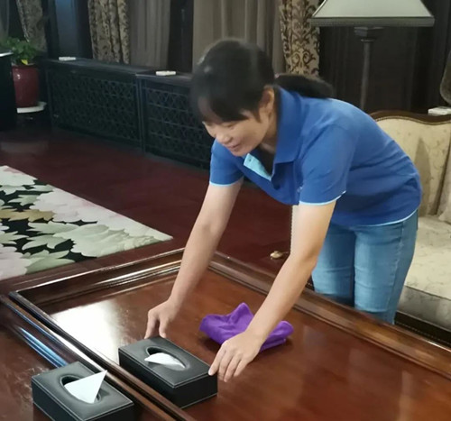 新的岗位也要用新的方法,徐荣香没有直接套用之前的操作经验,来到新岗位上班的第一周,她一边细心观察,一边潜心钻研,加强沟通,做好记录。一周后,徐荣香已经能做到自己负责的保洁区域无论何时都没有人能找到一片垃圾一抹灰尘,也闻不到任何异味。银行负责检查卫生的人员说:“这个保洁员真是不一样。她打扫后的区域,一整天都让人感觉清爽卫生,工作环境非常舒适。”不仅服务的银行对徐荣香特别满意,感受到银行环境氛围的变化,许多高端客户也纷纷邀请她为自己家里服务。