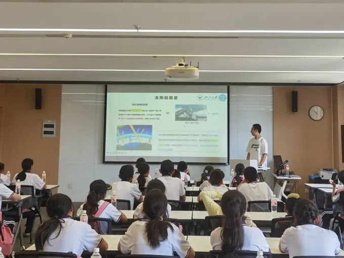 在之后的科普讲座中,志愿者老师以“夸父逐日”的神话故事为引子,生动讲述了人类对太阳的古老向往与不懈探索。讲座深入浅出地介绍了太阳能量的产生原理,以及太阳能在现代科技中的广泛应用,并展示了团队研发的新型薄膜光伏电池,这种高效、灵活的电池技术为未来能源发展带来了新希望。孩子们听得津津有味,现场气氛热烈。讲座最后,志愿者老师鼓励孩子们做勇敢追光的人,与科学做好朋友。