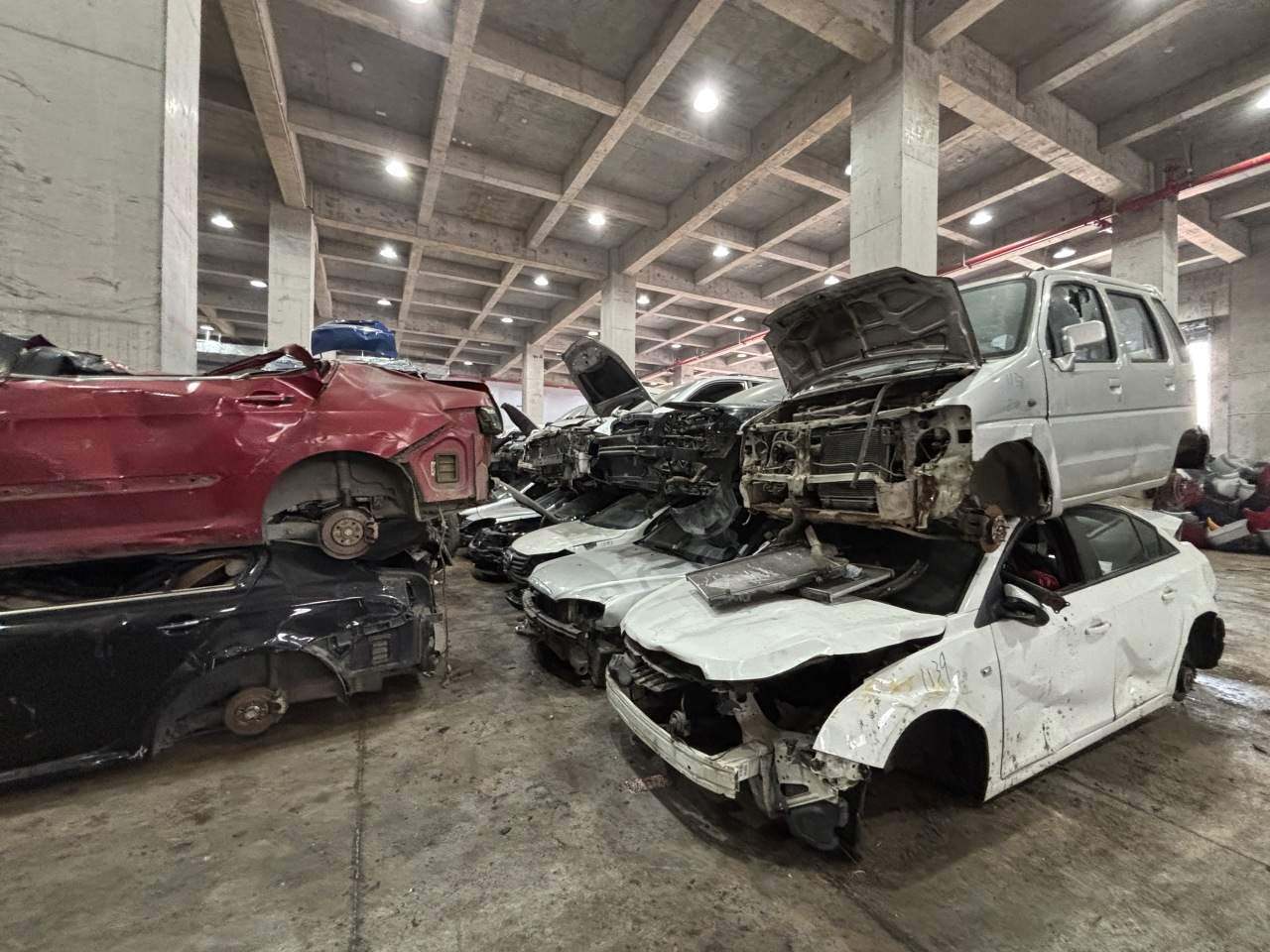 5月12日,记者走访秀洲区王店镇的嘉兴市物资再生利用有限公司,现场工人们正在对报废车辆进行“解剖”。预处理区,两辆废旧的车辆正被架空在操作台上,汽油、冷却液等车内液体被吸干抽净;车辆解体区,高大的抓钢机正开足马力,全力拆解废旧汽车表面的铁皮。在这里,一辆完整报废车的拆解仅需5分钟,每天有20多辆报废车拆解,年拆量在6000至7000辆。