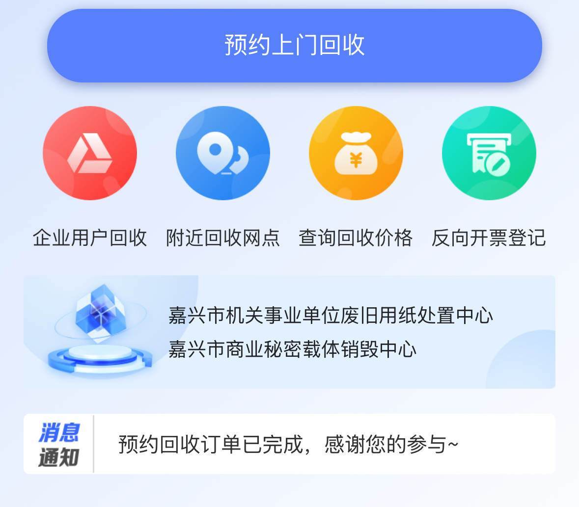 数字化浪潮席卷回收行业,“互联网+回收”模式让旧物回收搭上“智能快车”。市本级“嘉家收”预约回收小程序,根据市场价浮动显示回收价格,在线预约可享免费上门、有偿回收,打通再生资源回收“最后一公里”,累计上门服务近9000次见证着便利。