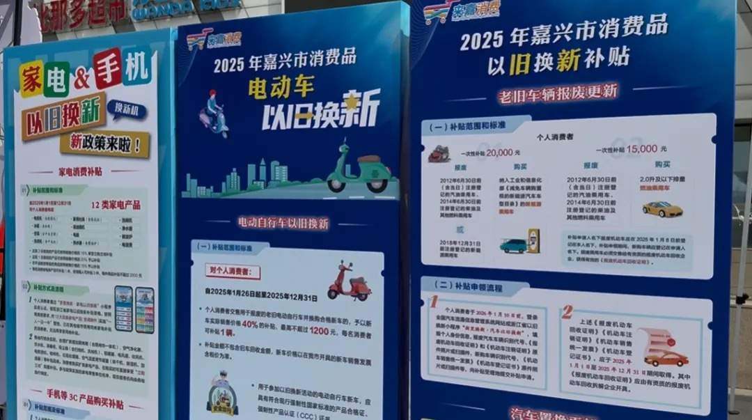 从家电消费补贴、家居消费补贴、3C购新补贴,到老旧车辆报废更新、汽车置换更新、电动自行车以旧换新……2025年,嘉兴市消费品“以旧换新”补贴加码扩围,市民消费热情高涨。